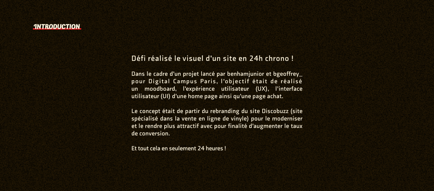Retrouve le projet sur [Behance]Client Fictif : Pour le site DiscoBuzz